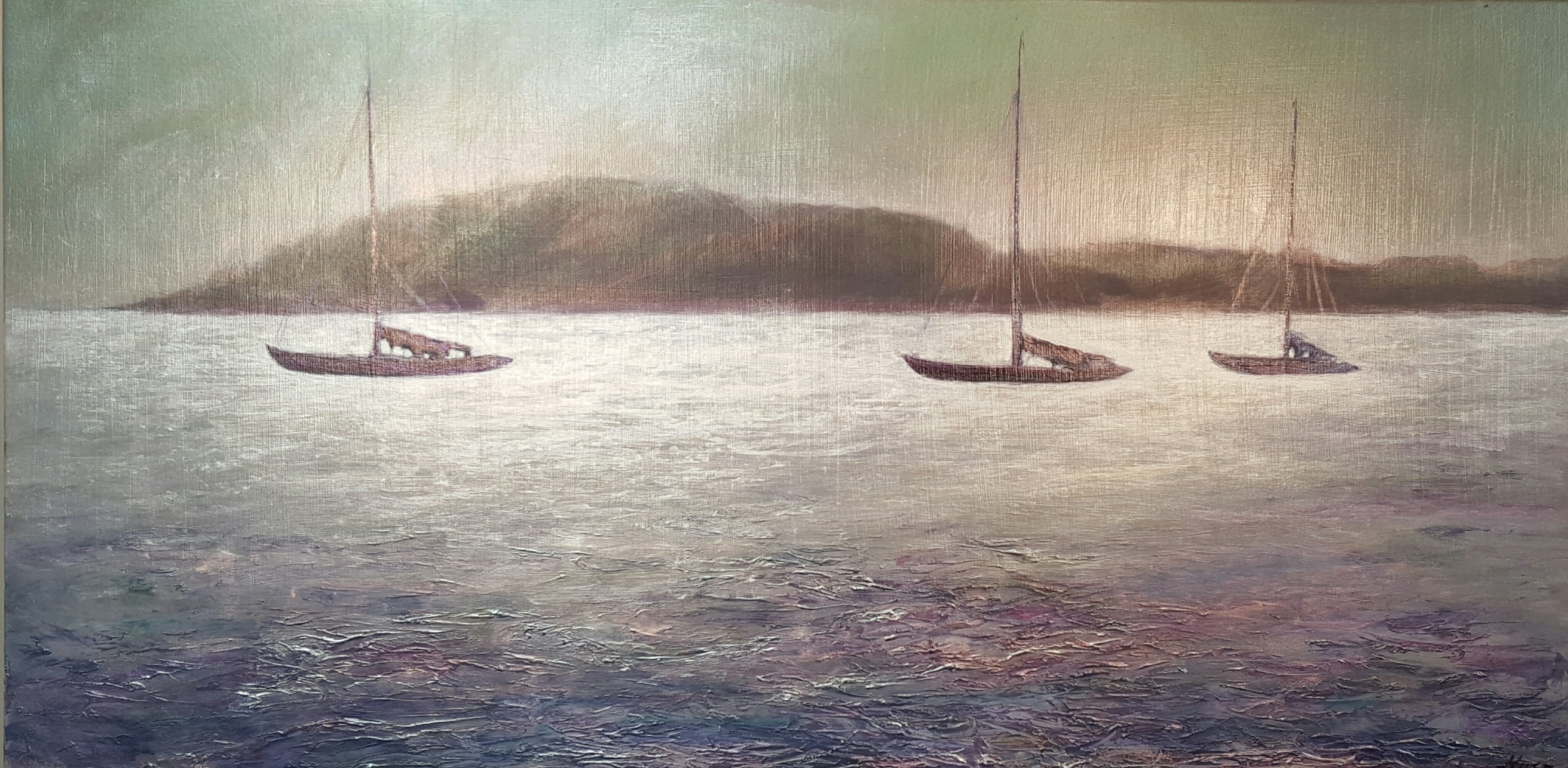 Published March 12, 2017 at 4098 × 2007 St. Maarten Afternoon Through Polarized Sunglasses. 18″X36″, Oil on Cradled Panel