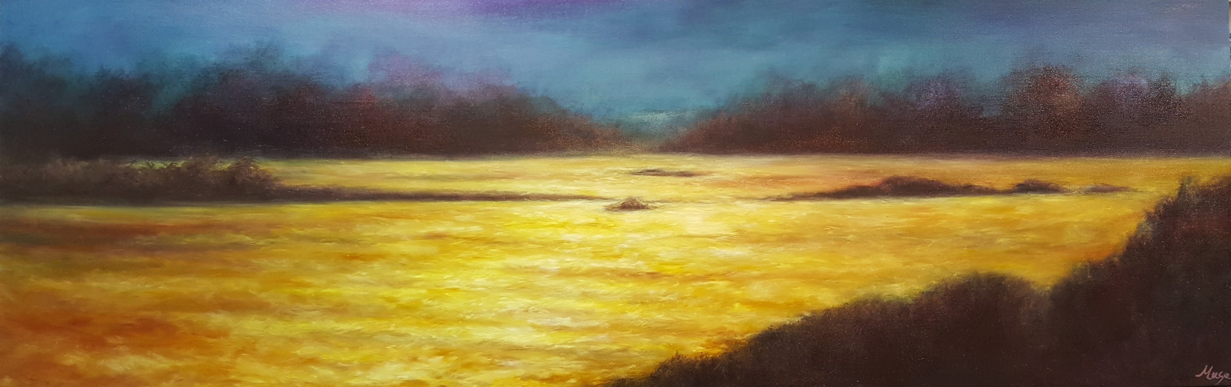 Cliffside at Sunset, 20″X60″, Oil on Belgian Linen