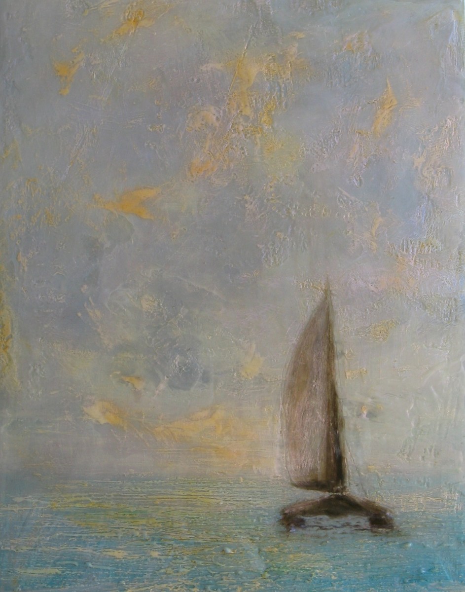 Published January 12, 2014 at 1626 × 2070 in Encaustics Next → Catamaran at Sea, 14″ X 11″, Encaustic and Resin on Panel Like Loading...