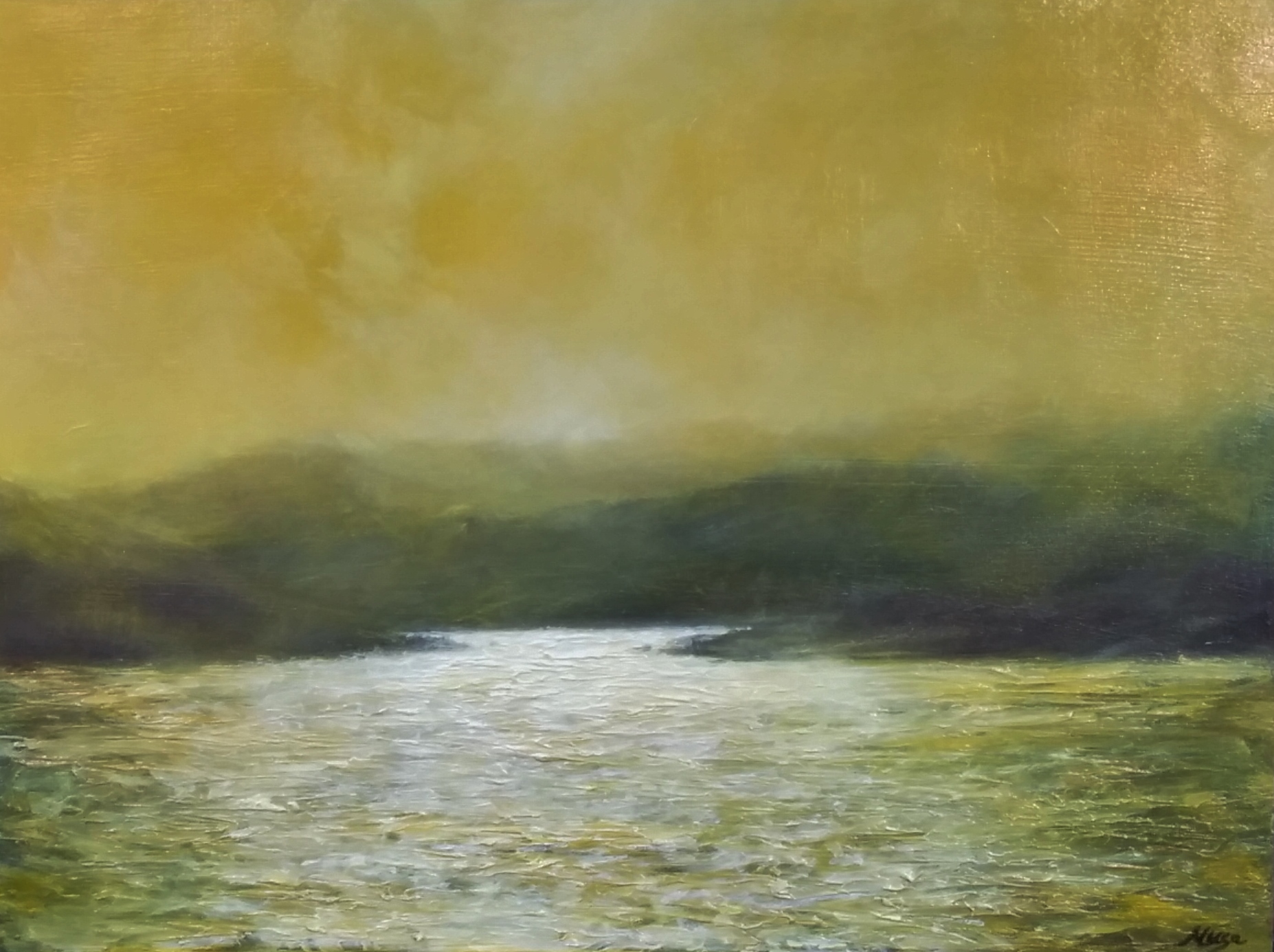 Published February 9, 2015 at 1854 × 1386 Sunset in Green Gold Series IV, 12″ X 16″, Oil on Cradled Panel